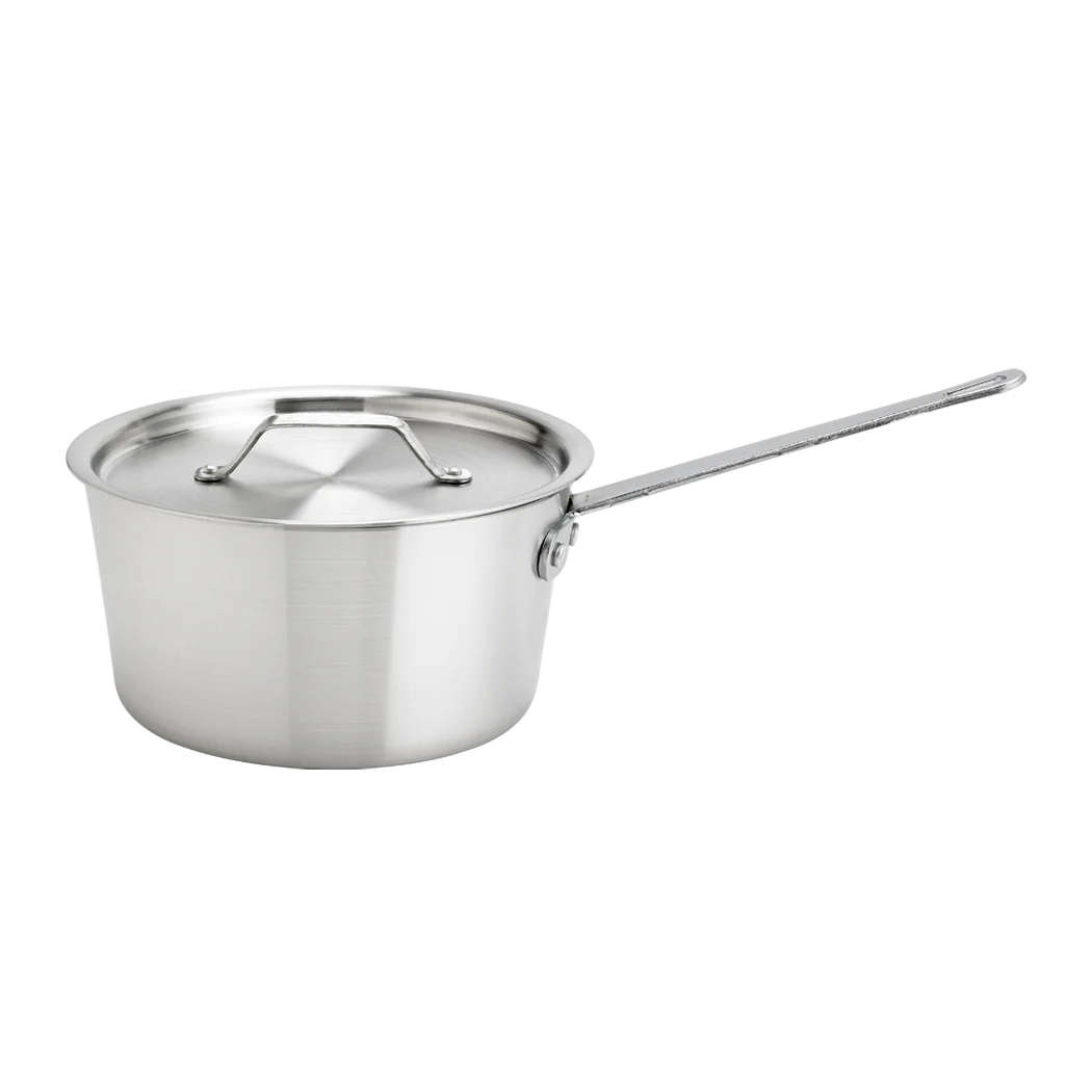 The Thermalloy 5.5 Qt. Sauce Pan, Aluminum is a reliable and durable choice for commercial kitchens, offering excellent heat distribution for consistent cooking results.