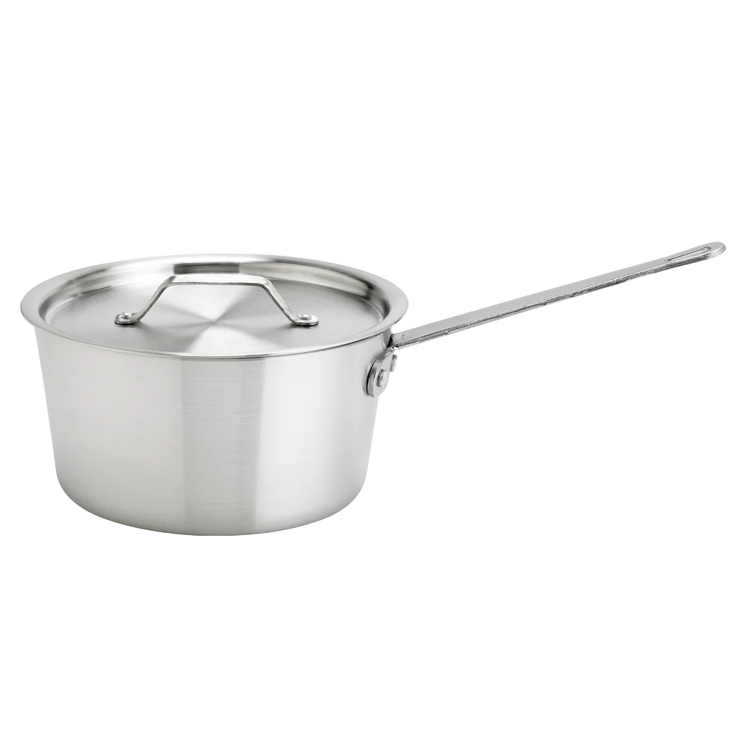 The Thermalloy 7 Qt. Sauce Pan, Aluminum is built for durability and efficient heat distribution, making it an essential tool for any professional or home kitchen.