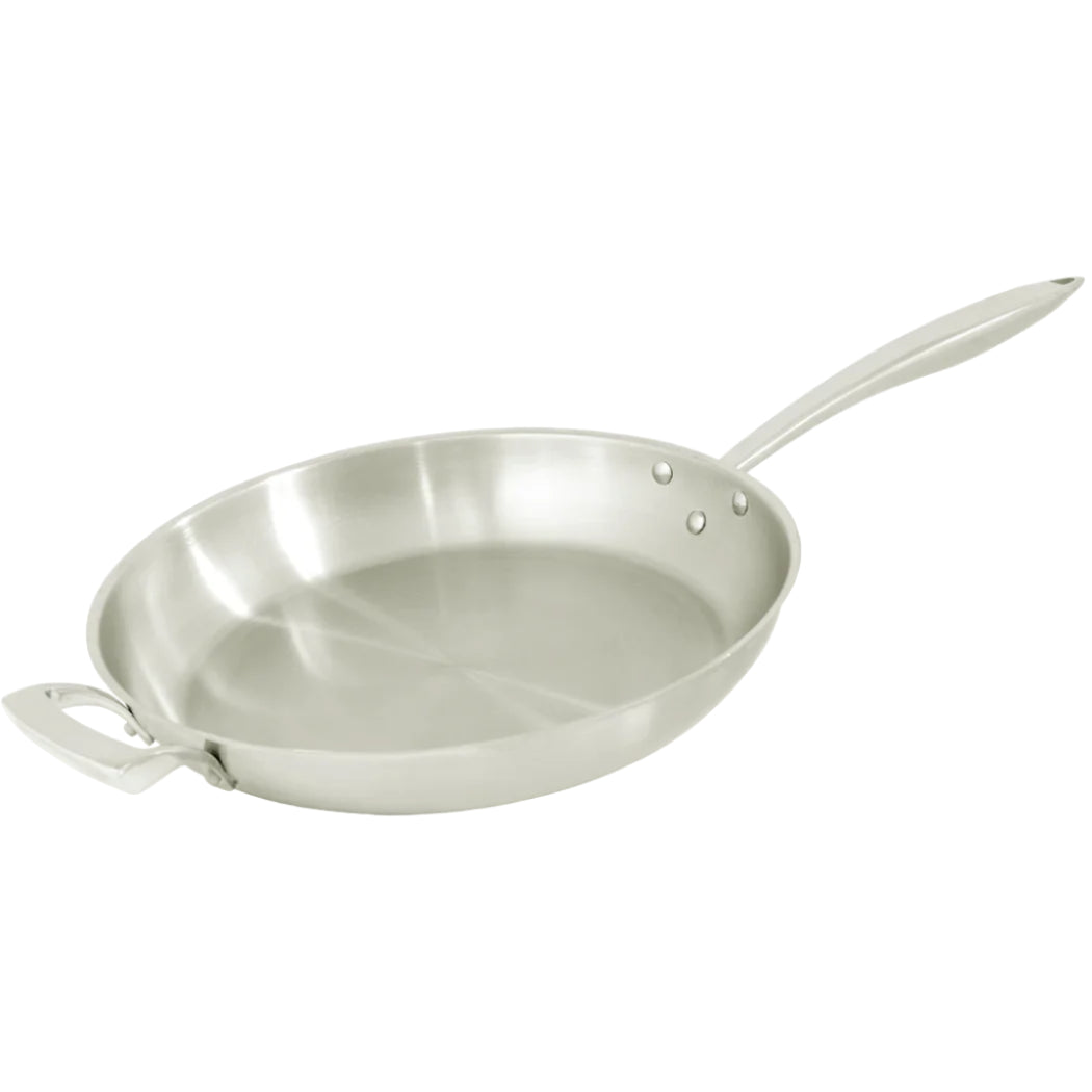 The Thermalloy Deluxe 14" Fry Pan with Helper Handle, Stainless Steel is built for durability, performance, and ease of handling. Designed with a 6 mm impact-bonded aluminum sandwich base, this pan ensures fast, even heat distribution, making it ideal for professional and home kitchens alike.