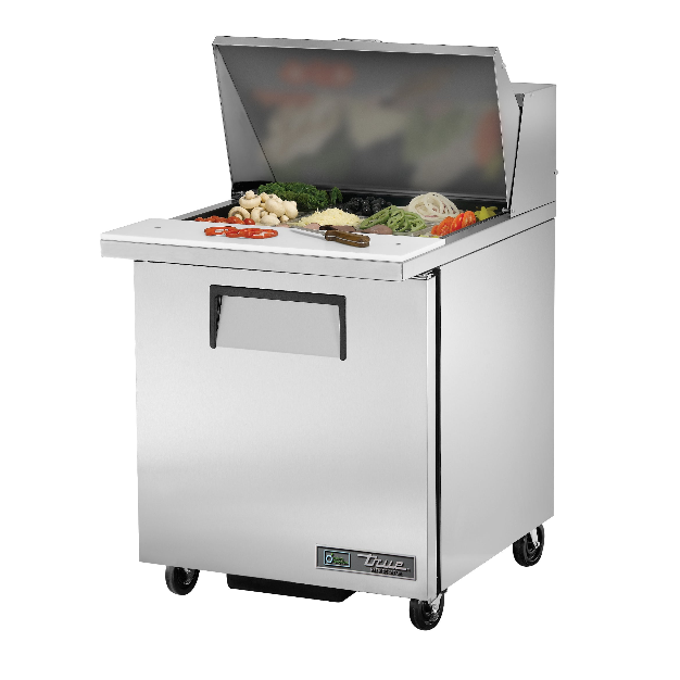 True's TSSU-27-12MB-LH Sandwich / Salad 12 Pan Refrigerated Megatop Prep Table with 1 Left Hinge Door made using the highest quality materials and oversized refrigeration system providing the user with colder product temperatures, lower utility costs, exceptional food safety and the best value in today’s food service marketplace.