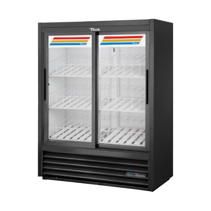 True’s GDM-41SL-60-BLK Merchandising Narrow Refrigerator with 2 Glass Sliding Doors, Black Exterior uses the highest quality materials and oversized refrigeration systems provide the user with colder product temperatures and lower utility costs in an attractive merchandiser that brilliantly displays packaged food and beverages.