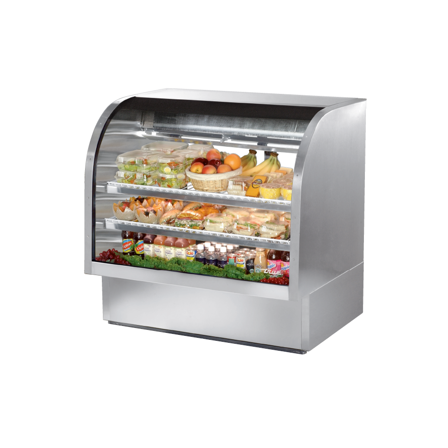 True 48" Refrigerated Deli Display Case with Curved Glass, Stainless Steel Exterior - TCGG-48-S