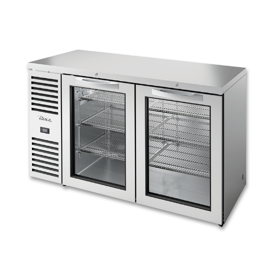 True 60" Back Bar Refrigerator with 2 Glass Doors, Stainless Steel