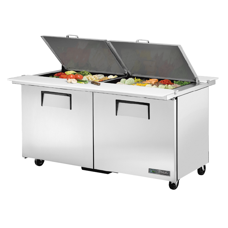 True’s TSSU-60-24M-B-DS-ST Sandwich / Salad 24 Pan Refrigerated Mega Top Prep Table, 2 Doors uses the highest quality materials and oversized refrigeration systems providing the user with colder product temperatures, lower utility costs, exceptional food safety and the best value in today’s food service market.