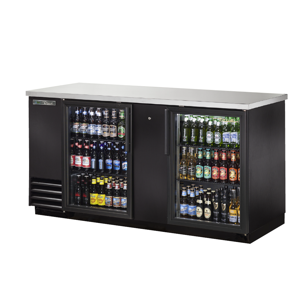 True 69" Back Bar Refrigerator with 2 Glass Doors