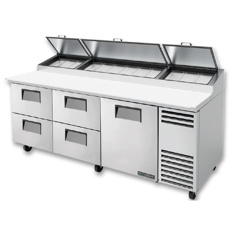 True 93" Refrigerated Pizza Prep Table with 4 Drawers & 1 Door - TPP-AT-93D-4
