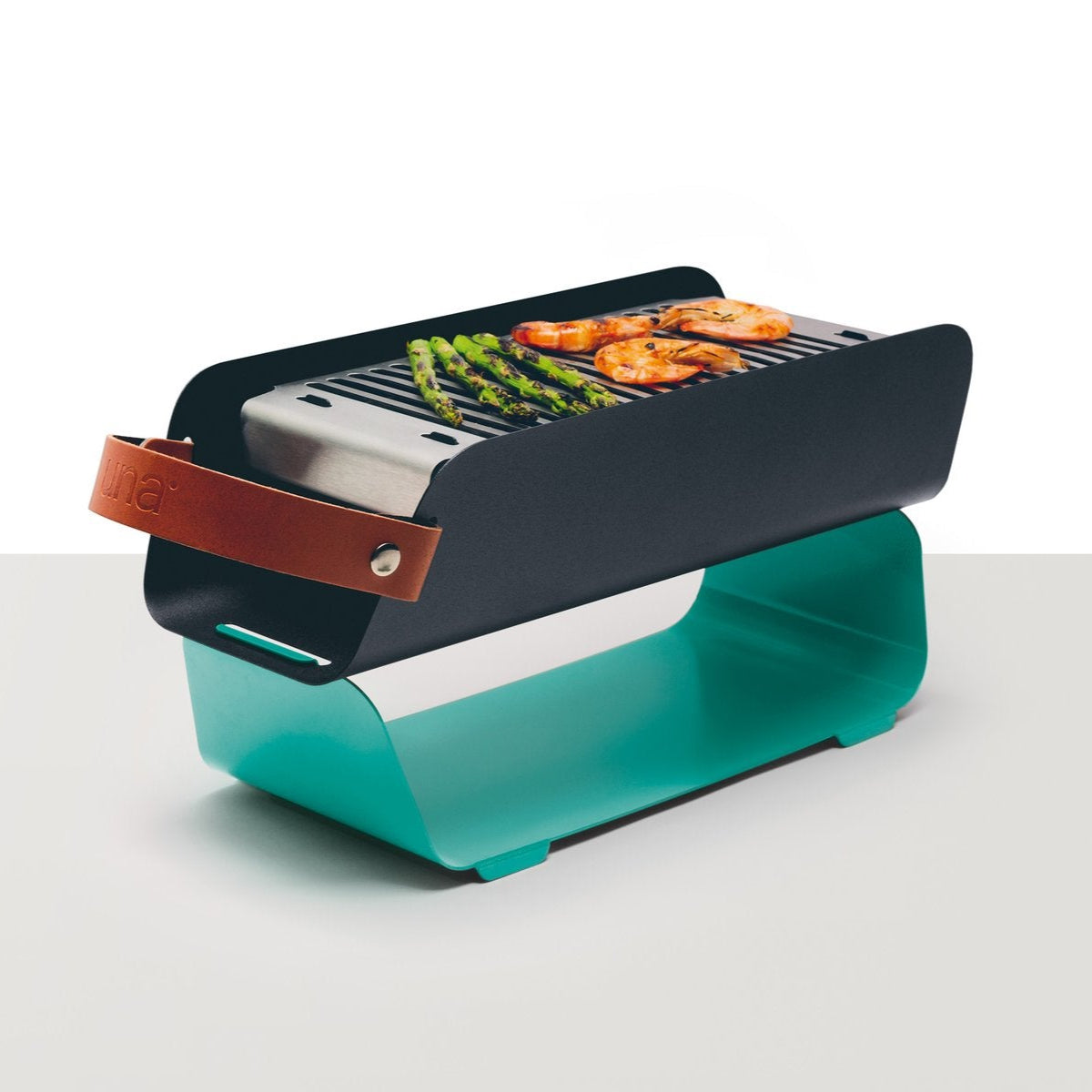Una Portable Table Top Charcoal Grill, Mint Turquoise, 17" x 6.6" x 4.2"