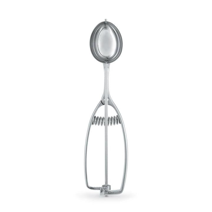 The Vollrath Oval Squeeze Disher #20 is a durable, ergonomic tool for commercial kitchens. Its heavy-duty stainless steel construction makes it an ideal disher for precise portioning of soft foods.