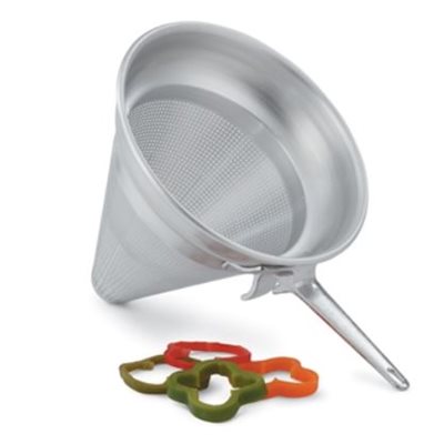 Vollrath China Cap Strainer: Perfect for busy kitchens, this strainer’s robust aluminum construction and fine mesh ensure efficient, clean results. The hooked design enhances stability, making it a reliable, essential tool for achieving smooth textures in professional culinary applications.