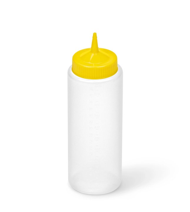 A versatile and convenient solution for foodservice operations, this clear squeeze bottle from Vollrath features a bright yellow tip for easy identification of condiments, sauces, or dressings. Designed for high-volume kitchens, it delivers precise portion control while maintaining hygiene and efficiency.