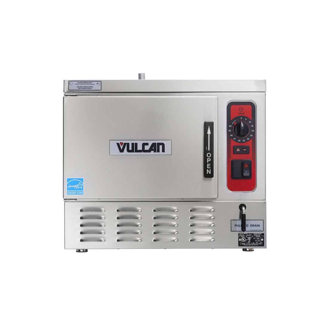 The Vulcan 3 Pan Electric Countertop Convection Steamer combines compact design, efficient steam production, and durable stainless steel construction to deliver reliable performance in commercial kitchens. With its simple controls, even cooking, and space-saving footprint, it is an excellent choice for restaurants, catering businesses, and institutions that require a dependable countertop steamer.