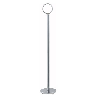 This chrome-plated steel table number holder is ideal for managing tables and ensuring proper serving. Comes with a weighted base to prevent falling over.