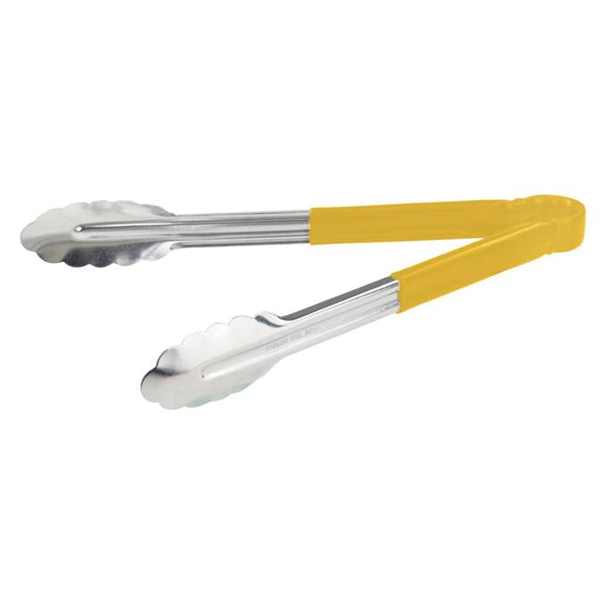 Winco 12" Heavy Duty Tongs, Yellow Handle - UT-12HP-Y