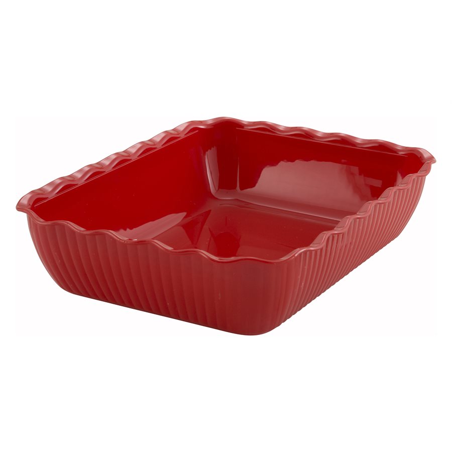 Winco 13" x 10" Deli Crock, 3" Deep, Red
