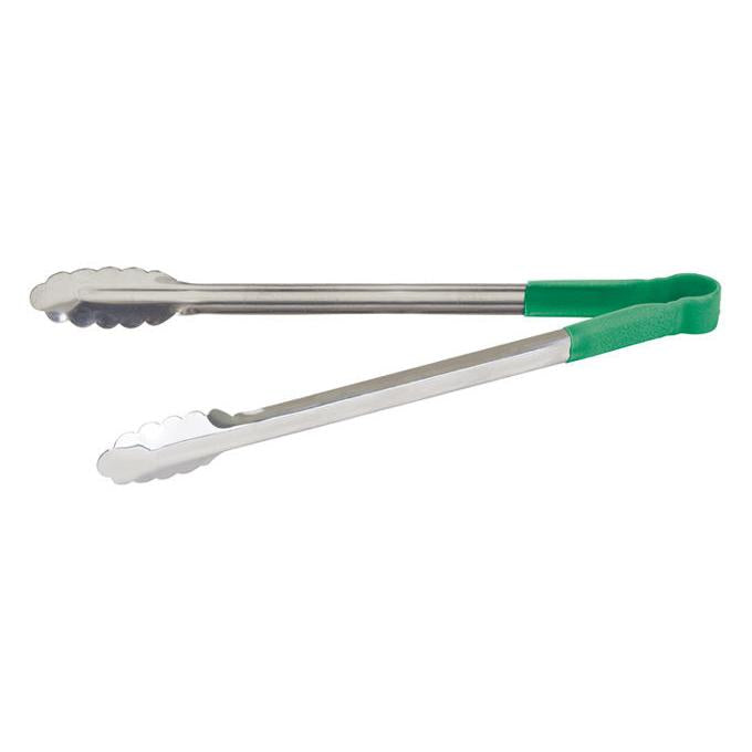 Winco 16" Heat Resistant Utility Tongs Heavy Duty, Green Handle - UTPH-16G