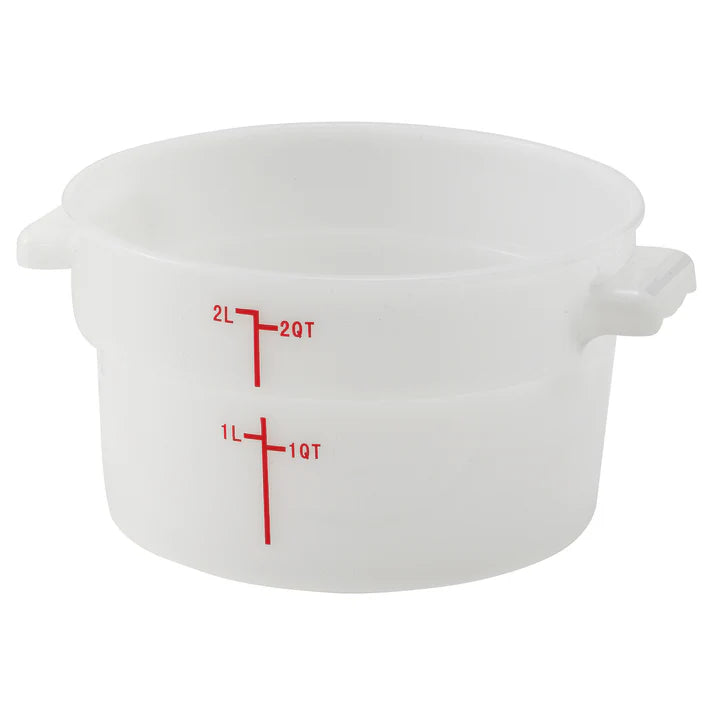 The Winco Round Food Storage Container is a versatile and durable option for storing and transporting both raw and prepared foods. Designed for commercial foodservice and restaurant use, this container withstands freezer temperatures and features easy-to-clean rounded interiors.