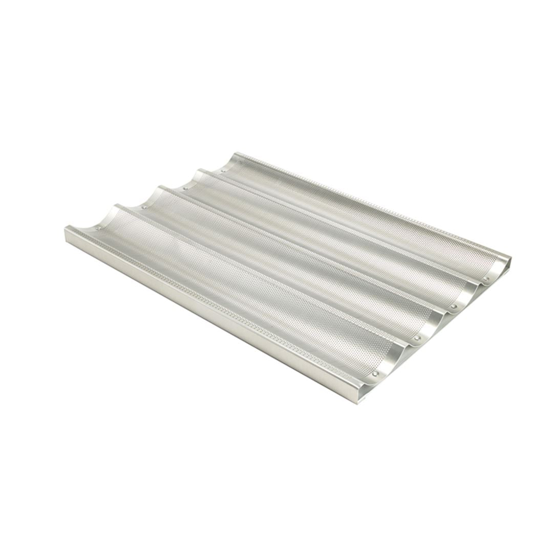 Serve up warm and fresh long rolls with the sturdy, commercial-grade baguette pans by Winco®. Each compartment cradles a baguette – up to six with the largest size pan – and the perforations allow air circulation for crispy crusts while the inside stays soft