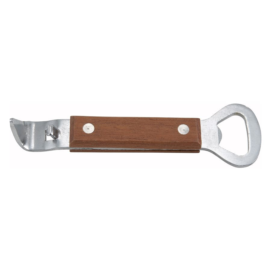 Winco 7" Can Tapper / Bottle Opener with Wooden Handle, Stainless Steel