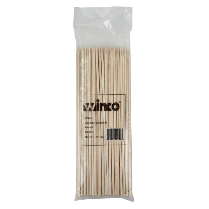 Winco 8" Bamboo Skewers, 100 /Pack - WSK-08