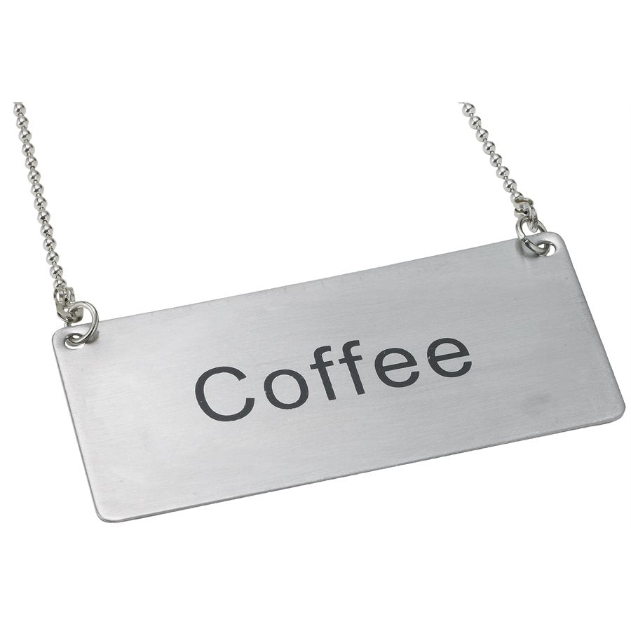 Winco "Coffee" Sign with 12" Chain, Stainless Steel, 3.5" x 1.75"