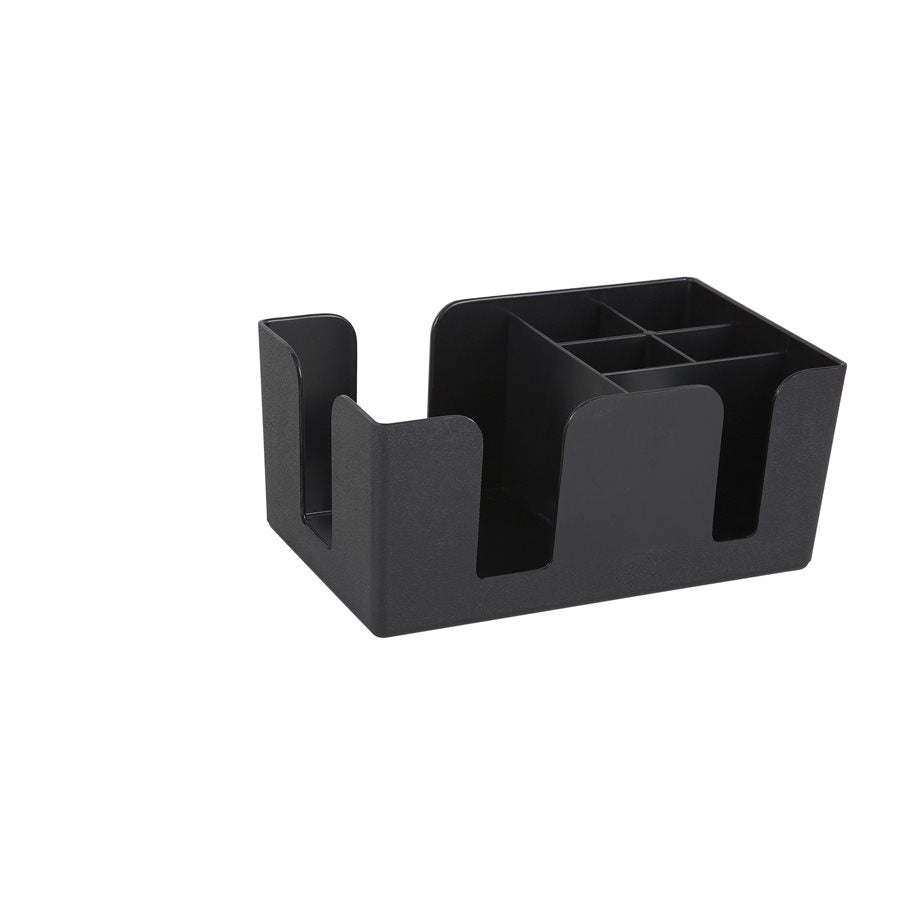 The compact design leaves a small countertop footprint and allows it to be used in a variety of spaces. The 6 compartments will allow for a nice variety of items to hold.