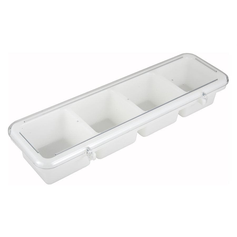 Winco Condiment Holder with 4 Compartments, White, 18" x 5" x 3"