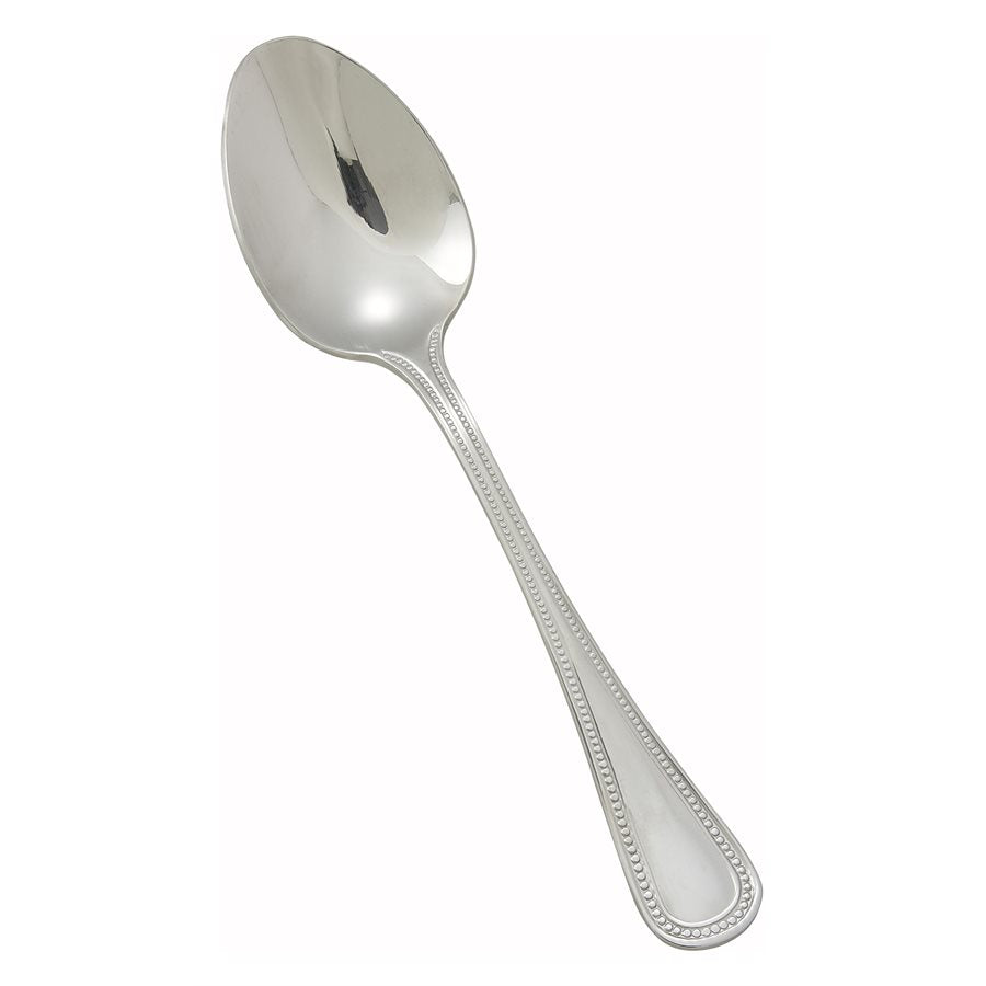 The Winco Deluxe Pearl Dinner Spoon, crafted from durable 18/8 stainless steel for lasting performance. With its classic design and comfortable size, this dinner spoon is perfect for serving main courses and soups in any commercial or casual dining setting.