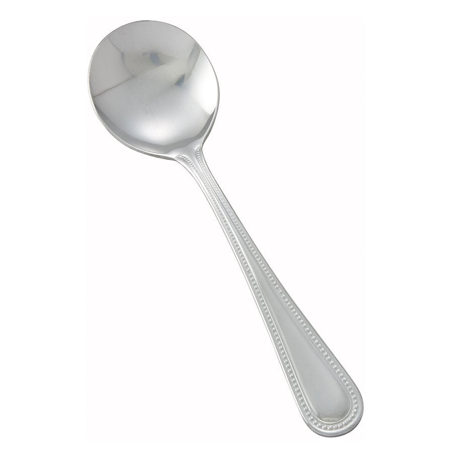 The Winco Dots Bouillon Spoon offers both function and refined design to elevate your dining experience.