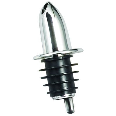 The Winco Fast Flow Pourer, No Collar, Chrome is designed for quick and consistent pours, this fast flow pourer features a chrome spout and food-grade poly plastic cork—ideal for high-volume bar service.