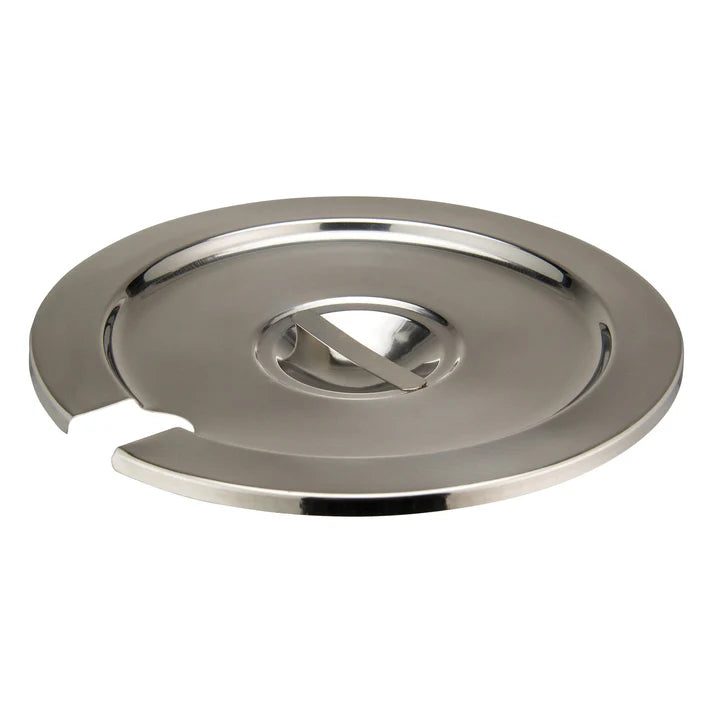 The Winco Inset Cover for Containers with Handle, Stainless Steel is designed to fit 7.25 qt steam table inserts, providing a safe and durable cover for food storage and service. Made with industry-approved materials, this cover meets or exceeds accepted industry standards.