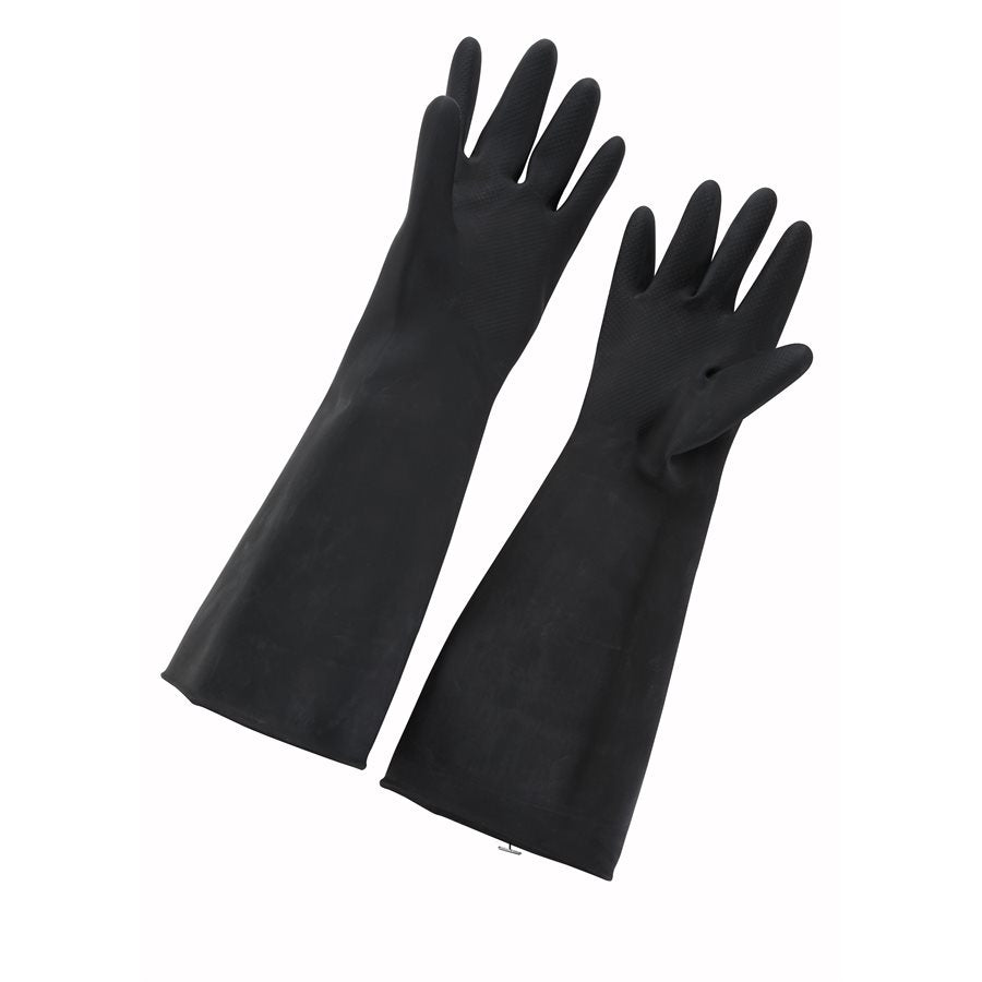 These natural latex gloves are perfect for use in a variety of commercial kitchen and janitorial jobs. The length is great to help keep arms and clothes dry.