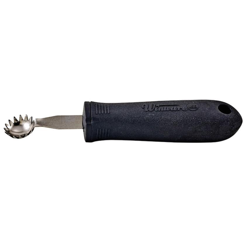 The Winco VP-308 Tomato Stem Corer with Soft Grip Handle is a reliable and comfortable kitchen tool that simplifies prepping tomatoes and strawberries. Its ergonomic design and durable build make it a go-to choice for efficient food preparation.