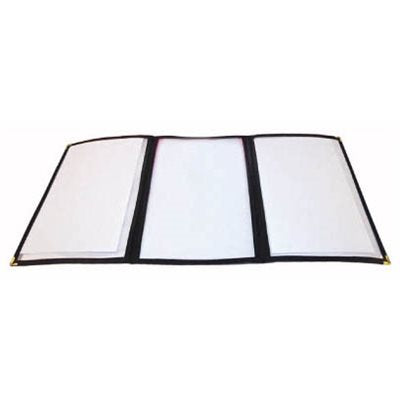 The Winco Tri-Fold Triple Panel Menu Cover, Black, is designed for durability and a professional look, this tri-fold menu cover is perfect for showcasing your full menu offerings.