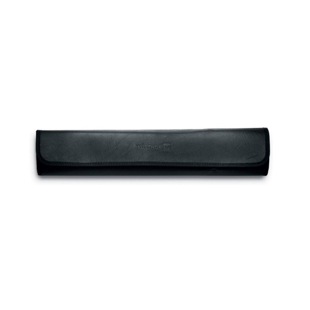 WÜSTHOF’s Pocket Knife Roll, Black offers secure storage for mobile chefs. Crafted from washable synthetic leather, this knife roll holds 9 knives with blades up to 36 cm. Measuring 51 x 48 cm open and 51 x 10 cm closed, it features a Velcro closure. Hand-wash with a damp cloth. Made in Solingen, Germany, it recommends blade guards for safety.
