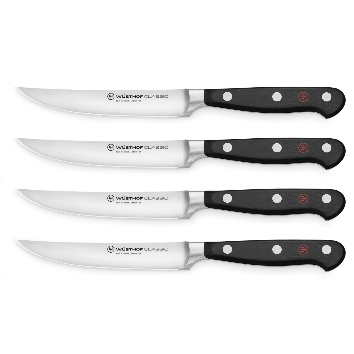 The WÜSTHOF Classic 4-Piece Steak Knife Set includes four (4) precision-forged 12 cm steak knives in the colour of your choice.
