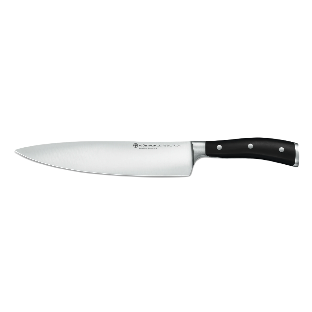 The WÜSTHOF Classic Ikon Chef's Knife is an essential, versatile kitchen tool for home cooks and professionals alike. Designed to handle everything from delicate fish and vegetables to tougher meats and dense greens, it delivers precision, comfort, and durability for all your cutting needs.